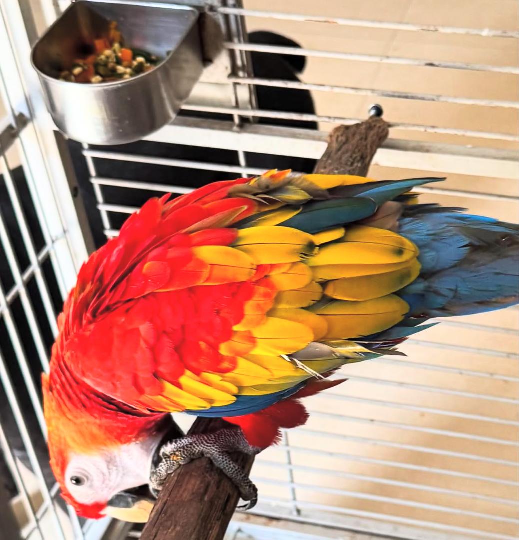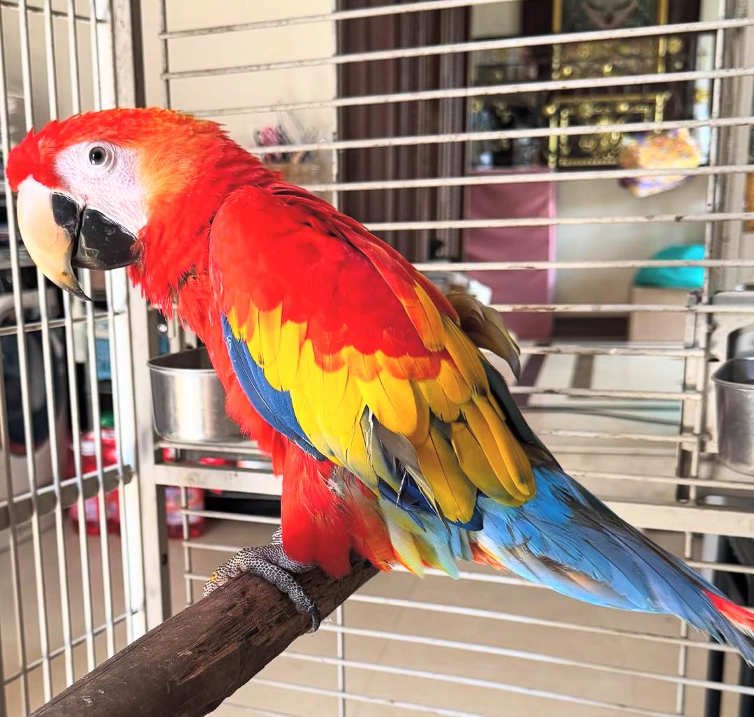 Scarlet Macaw parrots are among the most striking and intelligent birds in the parrot family, known for their vivid plumage, strong personalities, and impressive vocal abilities. Native to Central and South America, macaws thrive in tropical rainforests and are highly social creatures, often seen flying in pairs or flocks. They can live for 30 to 50 years or more, making them lifelong companions when kept as pets. Macaws require spacious cages, daily interaction, and mental stimulation through toys and training to stay healthy and happy. Their diet should include fresh fruits, vegetables, nuts, and high-quality pellets. With proper care, macaws form deep bonds with their owners and can learn to mimic words and sounds, showcasing their remarkable intelligence and charm.
