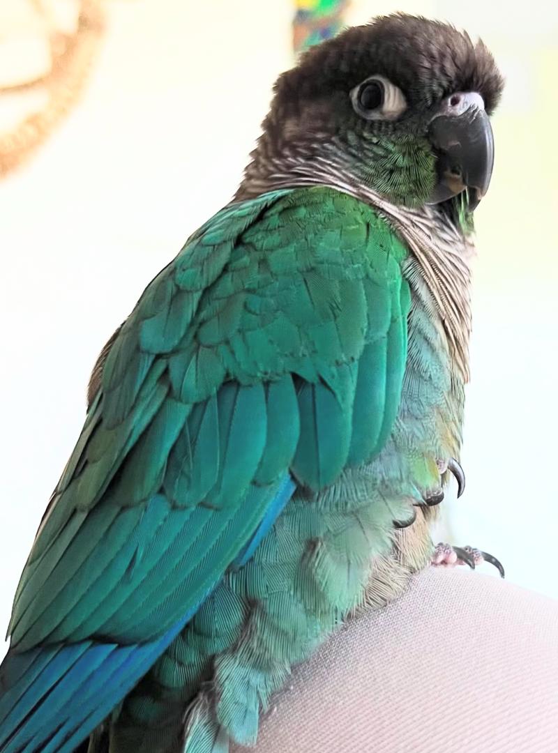 This beautiful female Pionus parrot is a gentle, intelligent companion perfect for bird lovers seeking a calm and affectionate pet. Known for her quiet nature and stunning plumage—often a blend of soft greens, blues, and hints of violet-she’s ideal for households that prefer a peaceful environment. She enjoys social interaction, responds well to gentle training, and can form strong bonds with her caregiver over time. With a lifespan of up to 25 years, she offers long-term companionship and thrives on a balanced diet of pellets, fresh fruits, and vegetables. This healthy female is ready for a loving home where she’ll be cherished and cared for. If you’re looking for a sweet–natured parrot with a serene personality, she’s a perfect match.