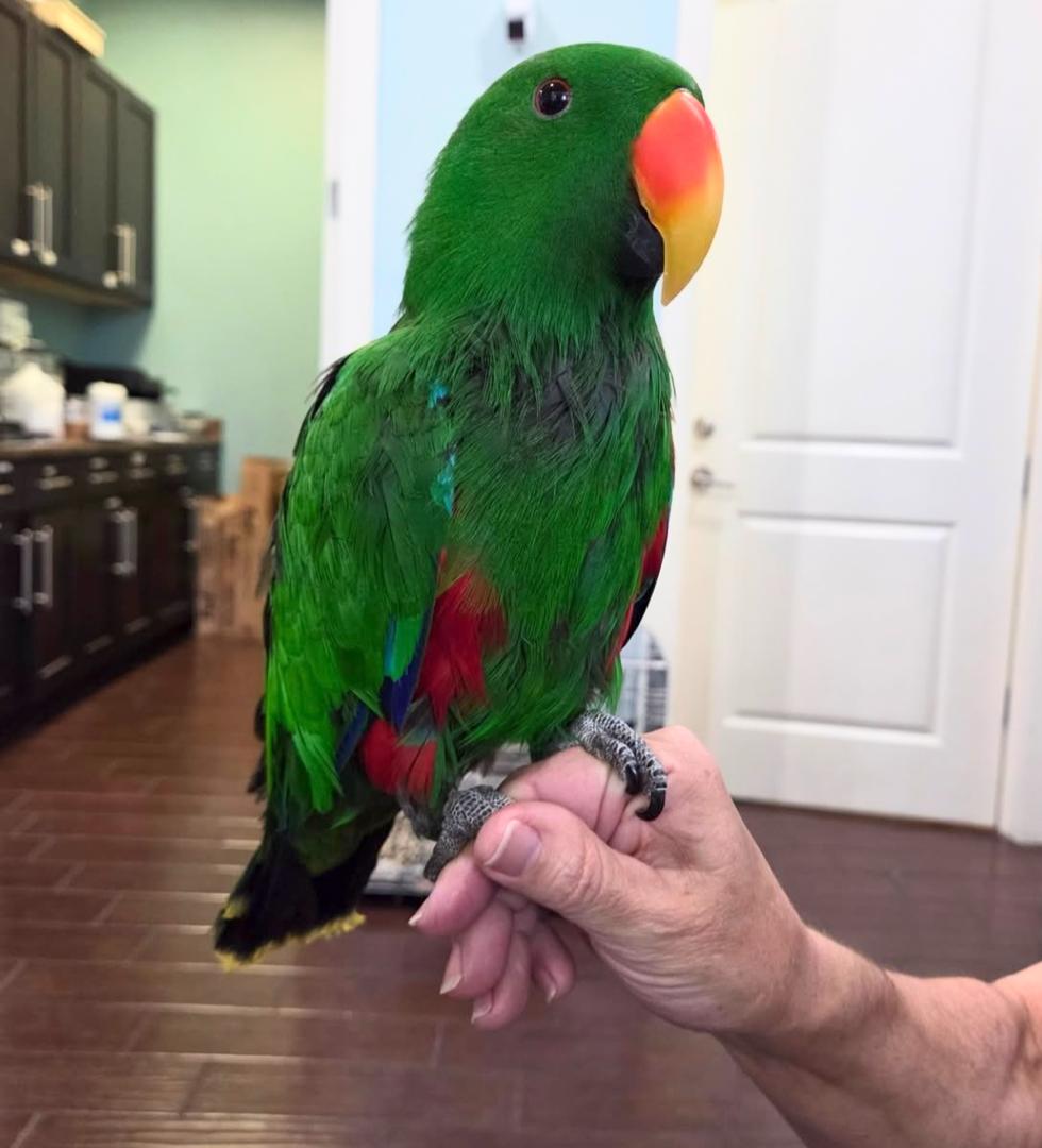 Male Eclectus are a dazzling addition to any bird lover’s home, known for their vivid emerald green feathers and gentle temperament. These intelligent parrots are excellent mimics, often learning to speak clearly and interact playfully with their owners. If you’re looking for a male electus parrot, it’s crucial to choose a reputable Parrots Home Rescue because we prioritizes health, proper hand-rearing, and early socialization. Males tend to be more laid–back than females, making them ideal for families or individuals seeking a calm, affectionate companion. They thrive on a diet rich in fresh fruits, vegetables, and high-quality pellets, and require mental stimulation and social engagement to stay happy. With attentive care, male Eclectus parrots can live up to 30 years, forming deep bonds with their humans.