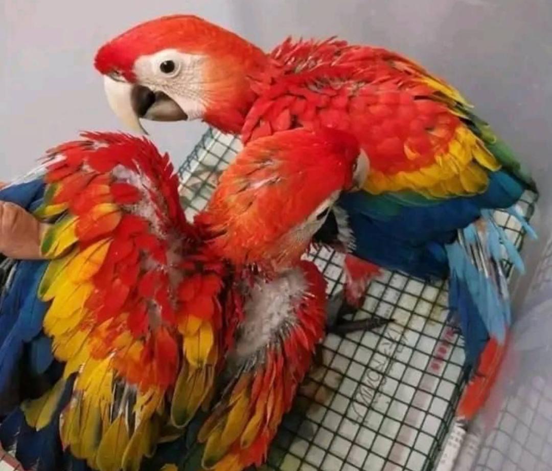 Scarlet macaw is a striking parrot species native to Central and South America, it boasts vibrant red plumage with blue and yellow wings. Measuring about 70 to 81 cm in length, making it one of the most valuable and recognized macaw. These birds are often seen in pairs or small flocks. Scarlet macaws are very beautiful, social and intelligent, forming strong pair bonds and communicating through loud squawks and screeches. Their diet consists mainly of seeds, fruits, and nuts. With proper care, they can live up to 50 years in captivity, making them long-term companions.