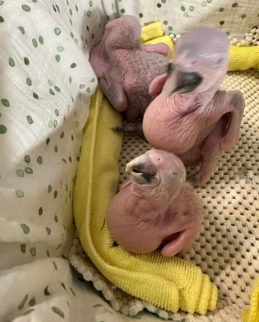 Sun Conure babies, also known as chicks, are tiny, featherless, and completely dependent on their parents or caregivers during the first few weeks of life. They hatch from eggs after about 23–27 days of incubation and are initially blind and helpless. As they grow, soft down feathers begin to appear, followed by their vibrant adult plumage around 6–8 weeks of age. These chicks require frequent feedings—typically every few hours—with a specialized hand-rearing formula if raised by humans. Maintaining a warm, clean environment is crucial for their development. Socialization from an early age helps them become friendly, affectionate companions. With proper care, Sun Conure babies grow into intelligent, playful parrots known for their bright colors and lively personalities. Sun conure babies for sale online